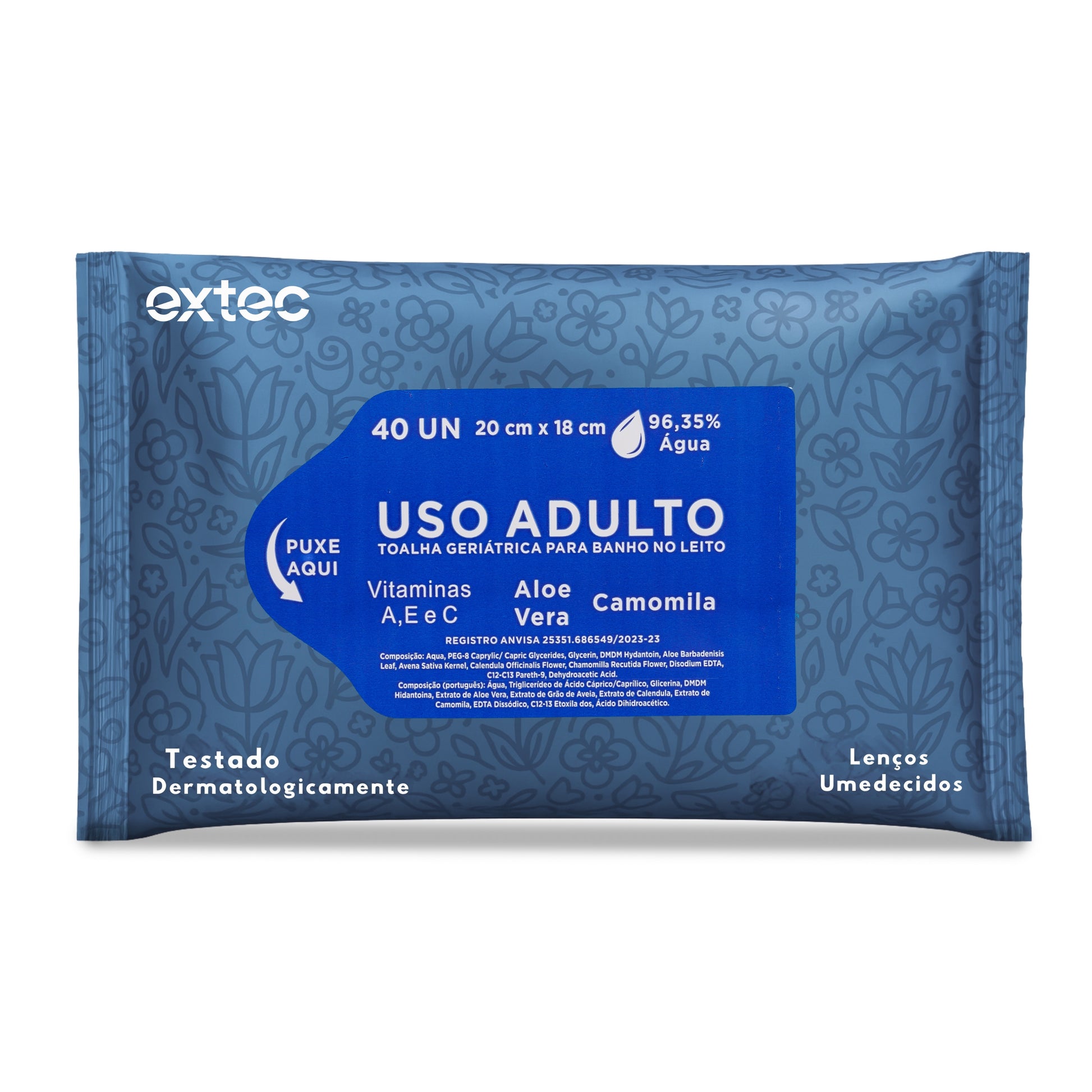 Lenço Umedecido 40 UN Geriatrico Banho Leito Higiene Corpo