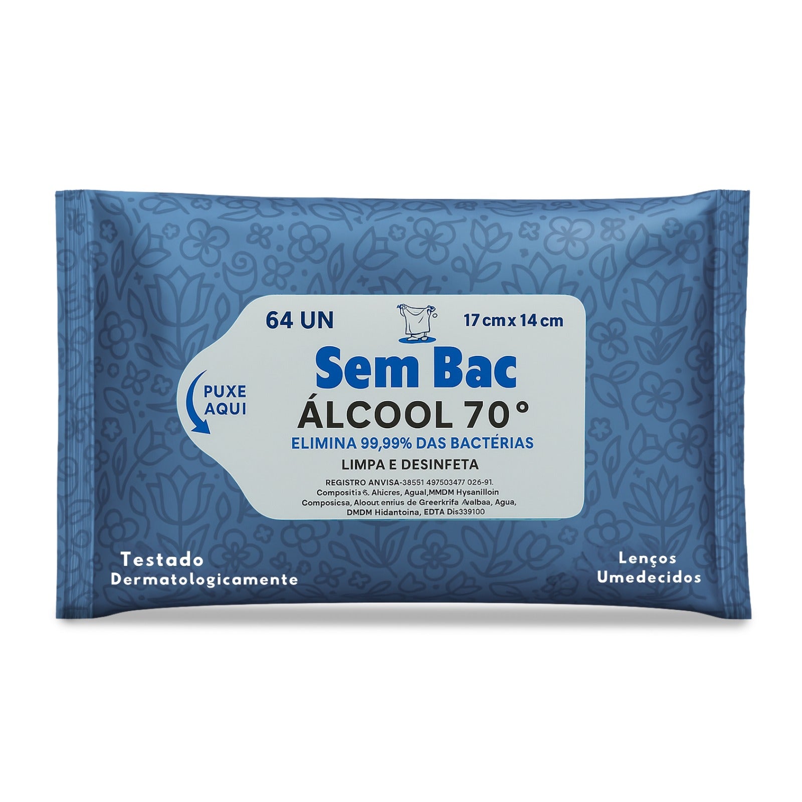 Lenço Umedecido 64 UN Alcool 70 SEMBAC elimina 99% bactérias